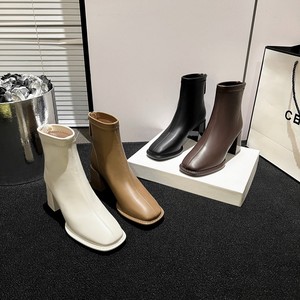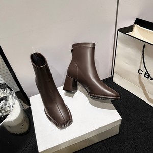 滨莉25秋季新款韩版网红高跟皮靴瘦瘦短靴高级轻奢经典百搭女靴
