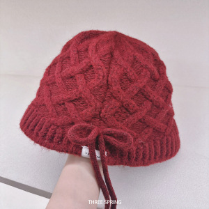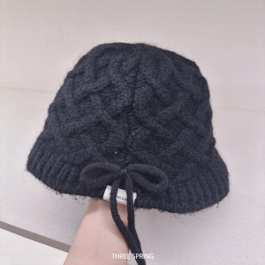 批发韩国2025年秋冬新款字母贴布粗线针织帽女深顶防寒护耳毛线帽