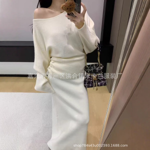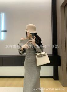 高品绵羊绒纯色两件套2025新款时尚百搭气质针织开衫冷淡连衣裙