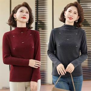 一件代发秋季新款妈妈装打底衫洋气时尚气质减龄中老年T恤小衫显