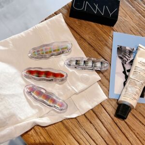 韩国新款清透亮闪彩色格子鸭嘴夹发夹甜美刘海夹侧边夹高级发饰