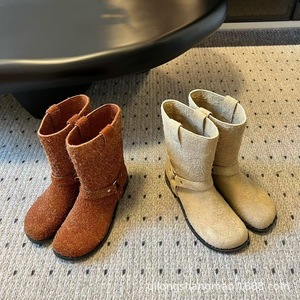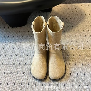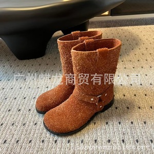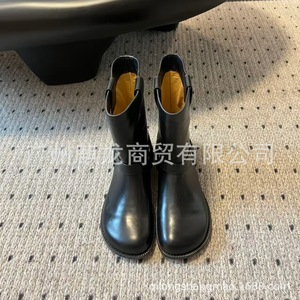 高端品质2025秋冬真皮圆头金属扣复古低跟中筒靴百搭骑士靴马丁靴