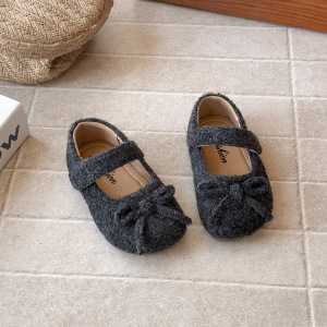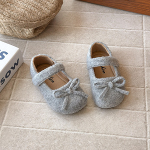 女童绒面小皮鞋2025春秋新款宝宝甜美蝴蝶结公主单鞋浅口豆豆鞋子