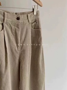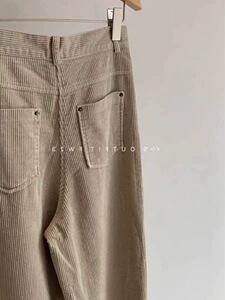牛X货 巨炸裂!复古杏色灯芯绒阔腿裤韩版高腰简约宽松休闲直筒裤