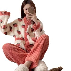 乌龙桃睡衣女可外穿珊瑚绒套装女士家居服保暖加绒家居睡衣女秋冬