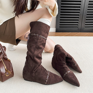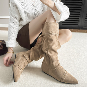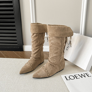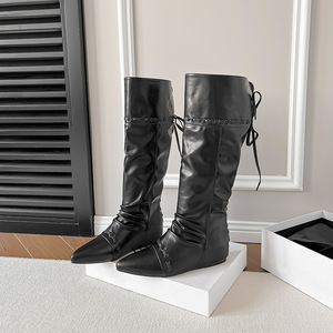 骑士靴女堆堆高筒长靴秋冬新款尖头内增高不过膝靴瘦瘦长靴