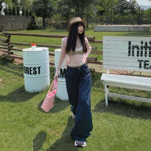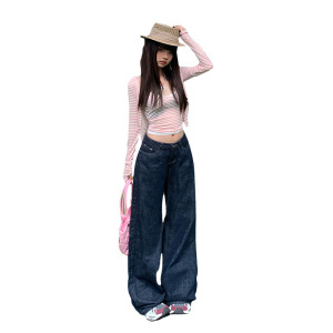 【今茵】美式复古低腰辣妹宽松微喇裤百搭显瘦不贴腿牛仔裤女新款