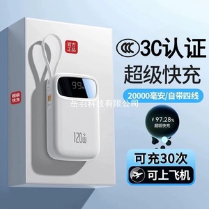 超级快充20000毫安充电宝带线小巧便携充电可携带大容量双向四线