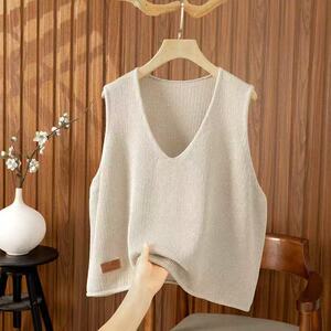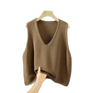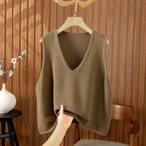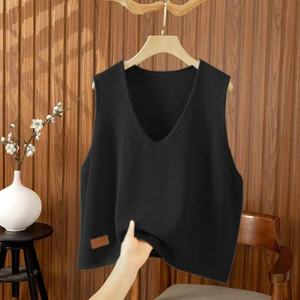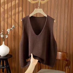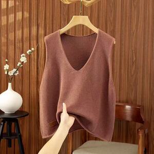 大码V领针织马甲女秋新款宽松女装叠穿马夹休闲简约背心外穿爆款