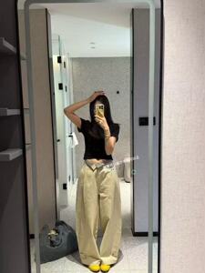 【预售】韩国东大门秋季新款时尚洋气宽松阔腿翻腰腿扣休闲裤