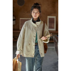 solighter 法式复古立领工装夹克外套女秋季2025新款显瘦宽松上衣