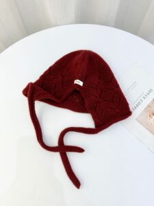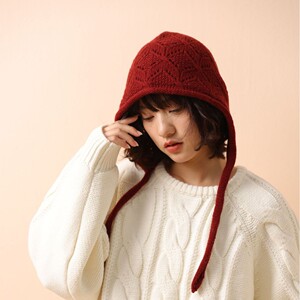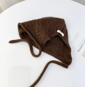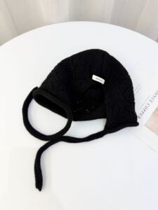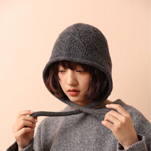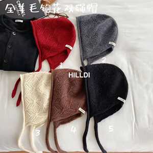 2025新款小红帽全羊毛针织帽冬季可系带包头帽子女百搭保暖护耳帽