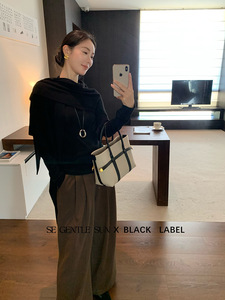 秀熙熙2025秋季新款黑标气质羊毛披肩纯色针织长袖上衣小衫25360