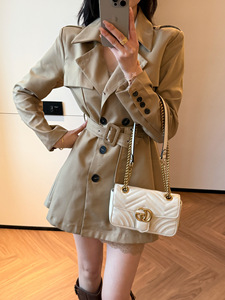 实拍 秋叶落畔卡其连衣裙式外套+腰带风衣英伦风翻领双排扣大衣女