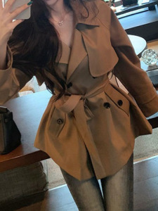 2025年秋季新款小众设计感休闲气质收腰显瘦a字中长款风衣外套潮