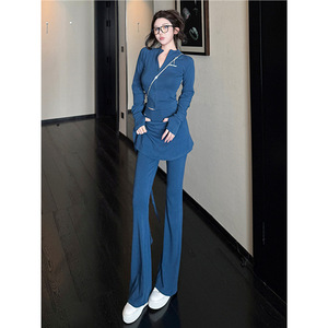 深圳南油辣妹纯欲风穿搭早秋一整套短外套假两件遮胯微喇裤套装女