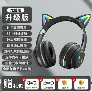 蓝牙耳机头戴式2025新款无线降噪耳麦游戏电脑有线猫耳朵女生小巧