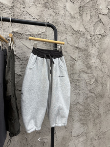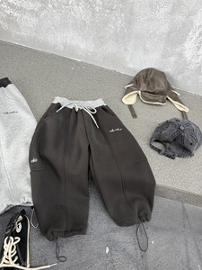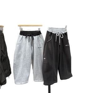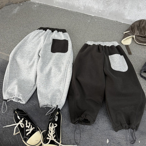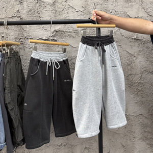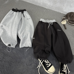 冬季男童女童加厚一体绒抽绳卫裤美式刺绣字母软糯加绒束口裤长裤