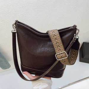 跨境复古软皮包包女2025秋冬新款百搭单肩腋下包休闲斜挎水桶包