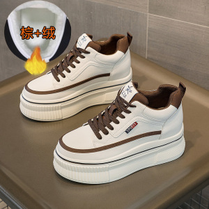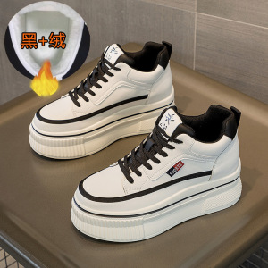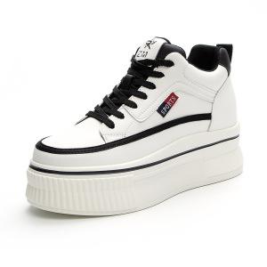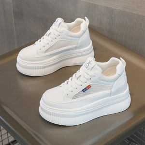 2025春夏新款内增高厚底休闲透气系带女士网鞋坡跟真皮小白鞋女