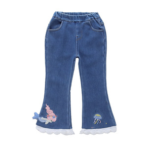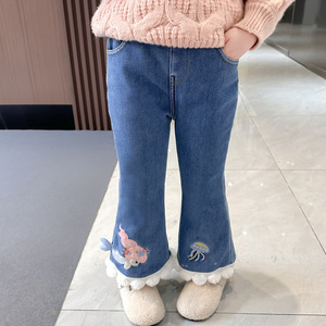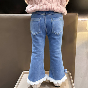 女童加绒牛仔裤秋冬款2025新款冬季洋气女宝宝儿童装冬装喇叭裤子