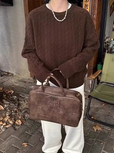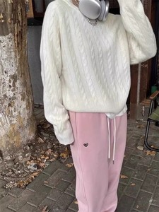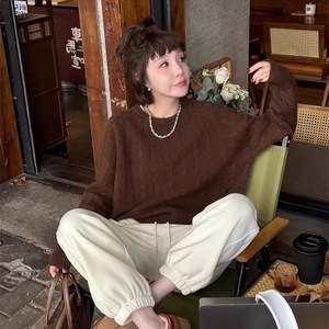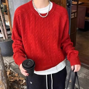 秋冬新款慵懒风保暖麻花毛衣女刺绣宽松百搭休闲圆领纯色针织衫