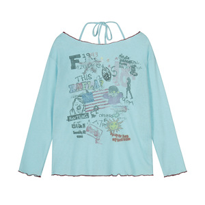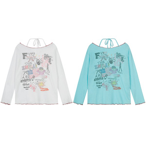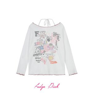 Fudge Pink 25秋季New甜美少女趣味卡通图案设计宽松长袖T恤