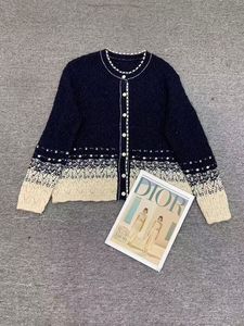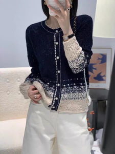 渐变色圆领开衫条纹拼色针织毛衣外套气质休闲原创设计感韩版女装