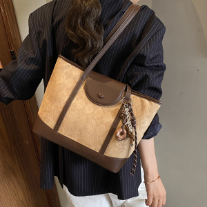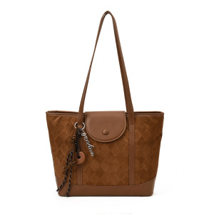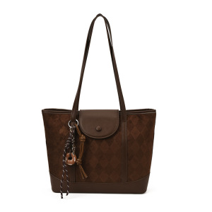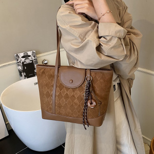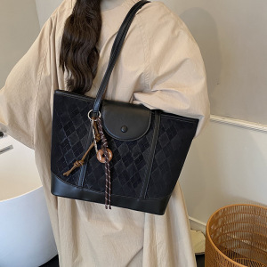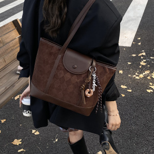 韩版复古磨绒菱格手提包包女单肩包2025秋季新款通勤大容量托特包