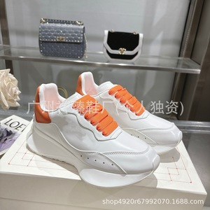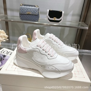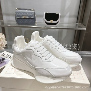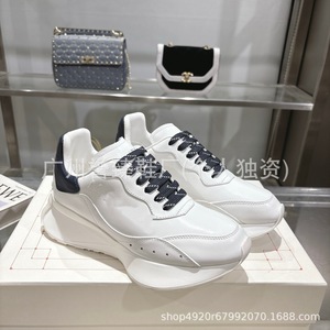 那扎同款厚底真皮小白鞋女增强系带四季松糕老爹鞋圆头运动休闲鞋