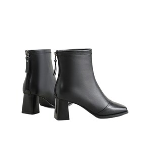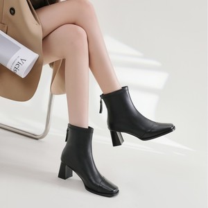 头层牛皮粗跟时装短靴女2025秋季新款法式粗高跟瘦瘦靴方头马丁靴