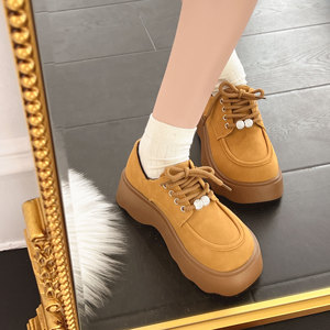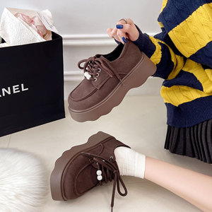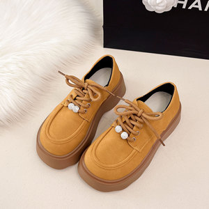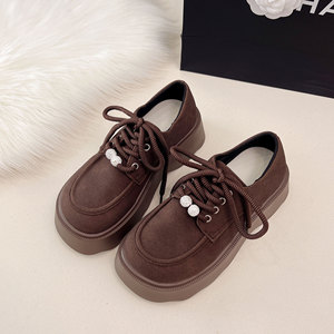 厚底乐福鞋女2025新款秋季复古英伦风小皮鞋百搭休闲系带勃肯单鞋