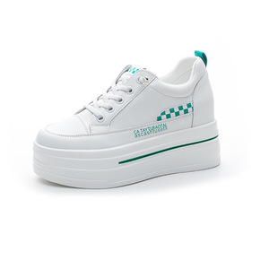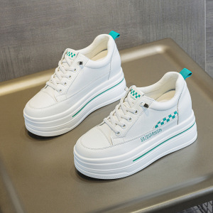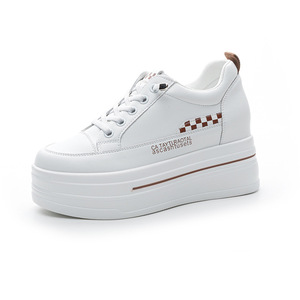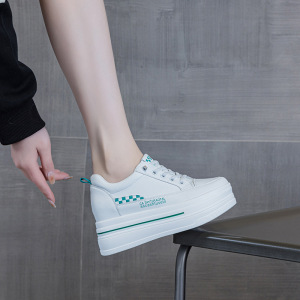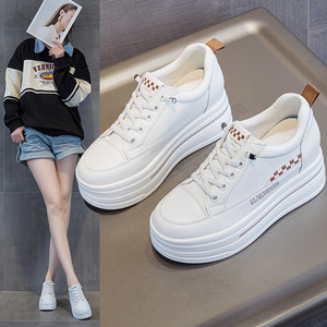2025春秋新款时尚百搭休闲系带印花增高厚底低帮小白鞋女单鞋