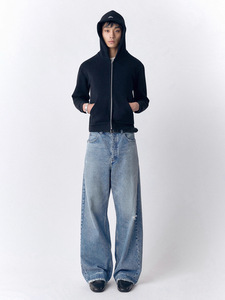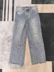 高版本Vujade010水洗做旧复古浅蓝色牛仔裤男女同款休闲直筒长裤