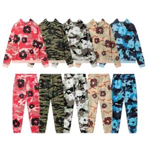 欧美跨境批发DT迷彩发泡木棉花印花卫衣套装情侣男款潮流