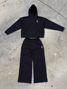 25跨境新款小马印花连帽卫衣秋冬潮流连帽卫衣套装男士