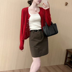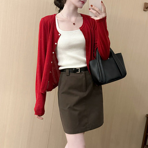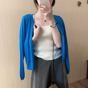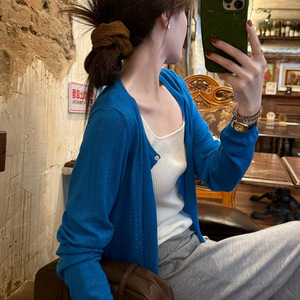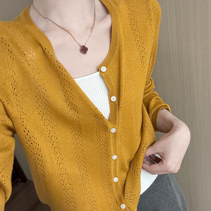 多巴胺小镂空早秋薄开衫2025新款甜美气质减龄显瘦长袖上衣女