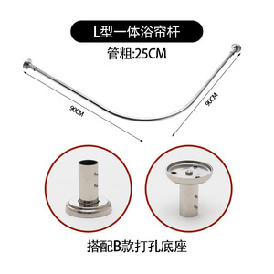 跨境不锈钢弧形浴帘伸缩杆L型一体U型杆窗帘杆家用卫生间浴帘撑杆