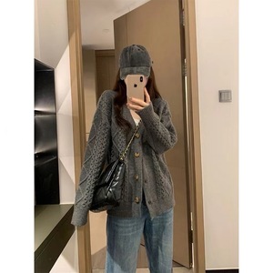 2025年秋冬季日韩女装新款外搭网红针织开衫百搭慵懒风毛衣外套
