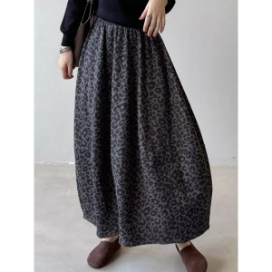 大码复古港风豹纹a字慵懒半身裙女秋季新款高腰显瘦A字包臀裙长裙