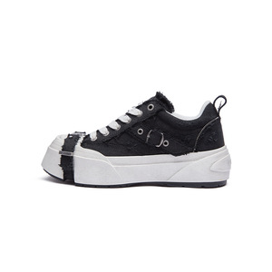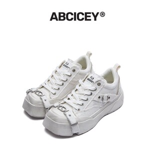 ABCICEY引力系列方头帆布鞋水洗白小众休闲绑带鞋时尚增高厚底鞋