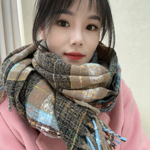 氛围感围巾女冬季仿羊绒新款百搭格子加厚长款披肩围脖女朋友礼物