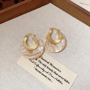 复古美拉德风晕染圆形耳扣简约时尚个性气质耳环轻奢高级感耳饰女