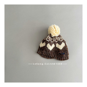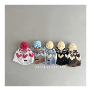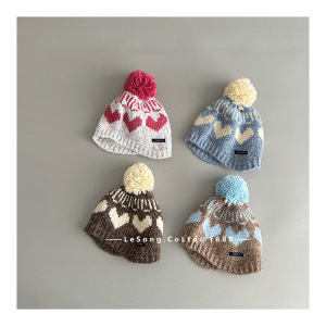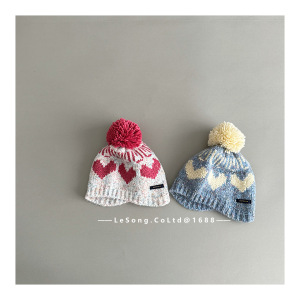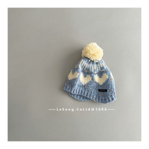 韩版混彩爱心毛球针织毛线帽女童秋冬甜美百搭保暖护耳套头帽