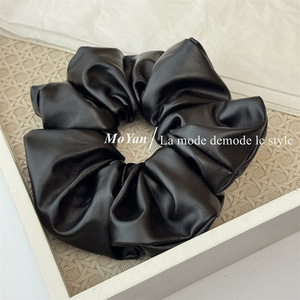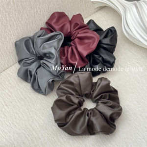 韩版简约PU皮质大肠发圈时尚通勤百搭扎头绳女高级感马尾发绳头花