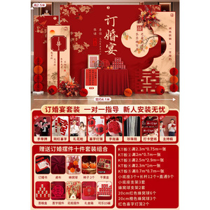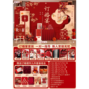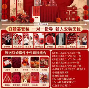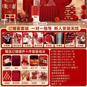 订婚宴布置装饰全套订婚kt板背景墙新中式定 制用品摆件场景背景