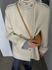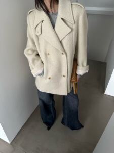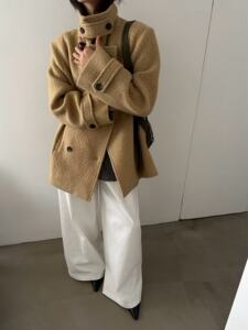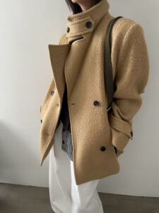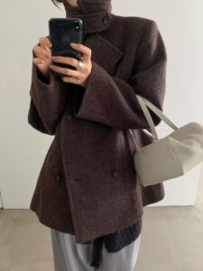 【预售】韩国东大门room2025秋季新款时尚百搭领啦双排扣羊驼大衣