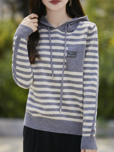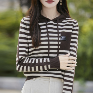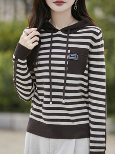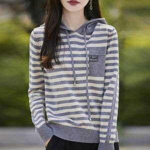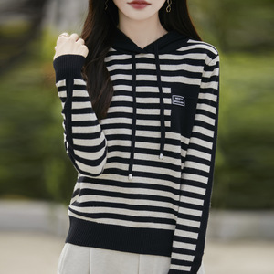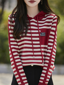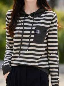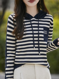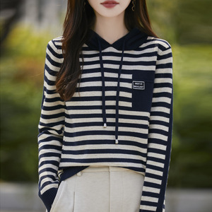 撞色条纹连帽卫衣女2025秋季新款时尚经典洋气百搭宽松休闲长袖衫