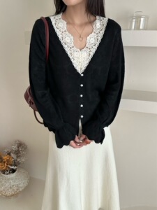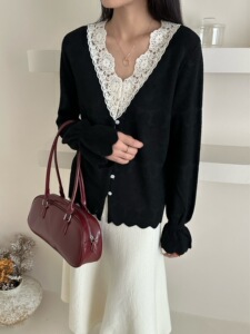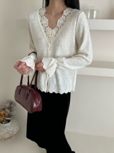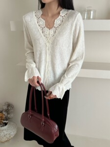 濮院2025秋季百搭气质新款法式镂空欧根纱毛衣高级长袖钩花蕾丝女