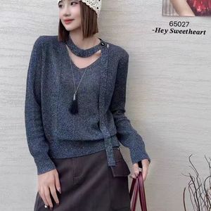 濮院花纱亮片羊毛衫镂空飘带v领镂空长袖2025秋装新款针织毛衣女